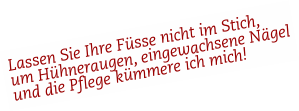 | Hühneraugen entfernen Nägel schneiden verdickte Nägel herunterschleifen Behandlung eingewachsener Nägel inkl. Wundbehandlung |